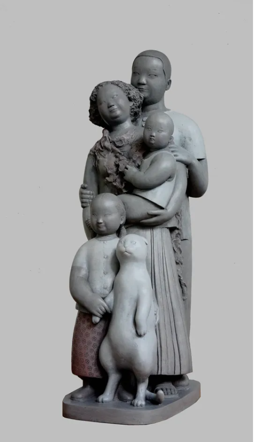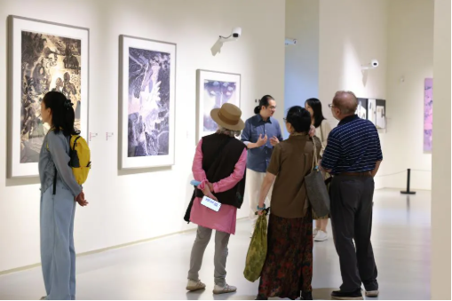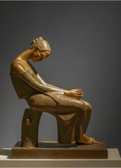 “抒:家国情怀”部分,吴慧明的雕塑赞美劳动者;林蓝以“金版水墨”提炼花鸟精神,寄寓深情;潘缨以马赛克式水墨再现女性形象;周思旻融合东西雕塑语言,形式优美。李传真关注务工群体,结合素描与传统线条,刻画真实人生;沙永汇以木刻描绘时代建设;安佳、邓柯、谢晓虹、朱智伟、唐天衣皆从不同角度表达家国深厚情感。