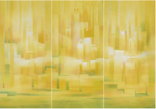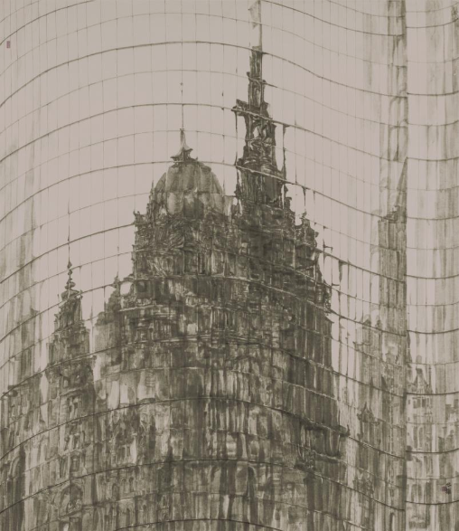 张驰 《都市之光》 纸本设色 240cm×115cm×3 2024年