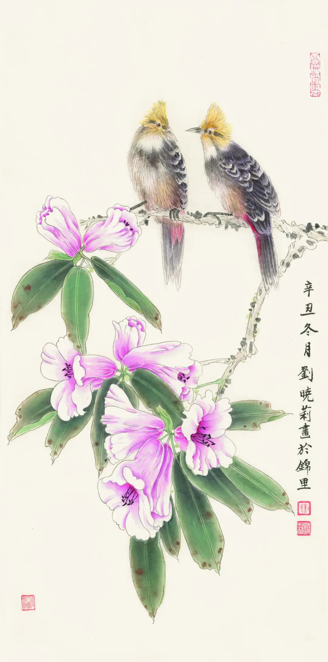 刘晓莉《 杜鹃小鸟 》68×34cm 工笔