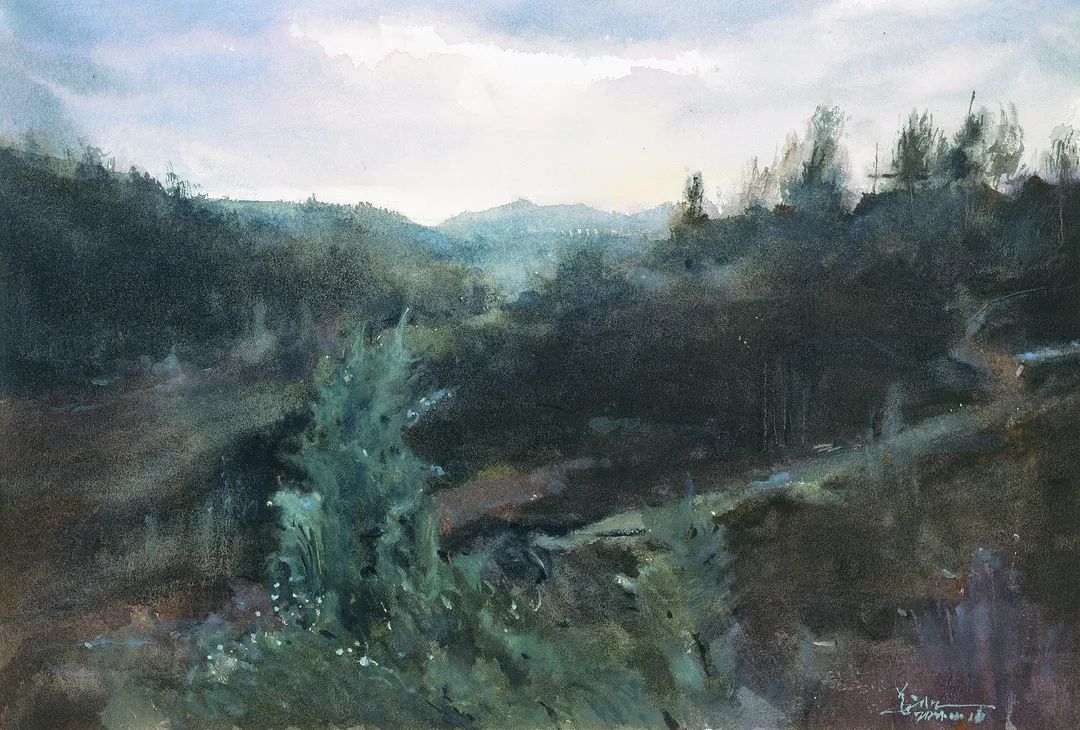 姜冰《定军山田园系列之:野山》 53×38cm 水彩