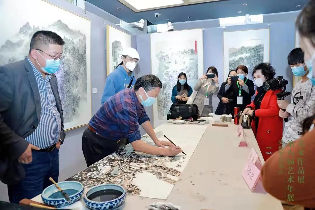 展览开幕式后,还举行了笔会活动。著名艺术家姚叶红、张跃进、龚仁军、陈志才、钱磊、陈荣、胡真来、夏红明、冷蓉、唐坤、程绍军、陈少林在现场展卷挥毫,妙绘丹青。一幅幅反映时代的国画作品积淀着艺术家们深厚的艺术底蕴和人文素养,表达了对生活的热爱。