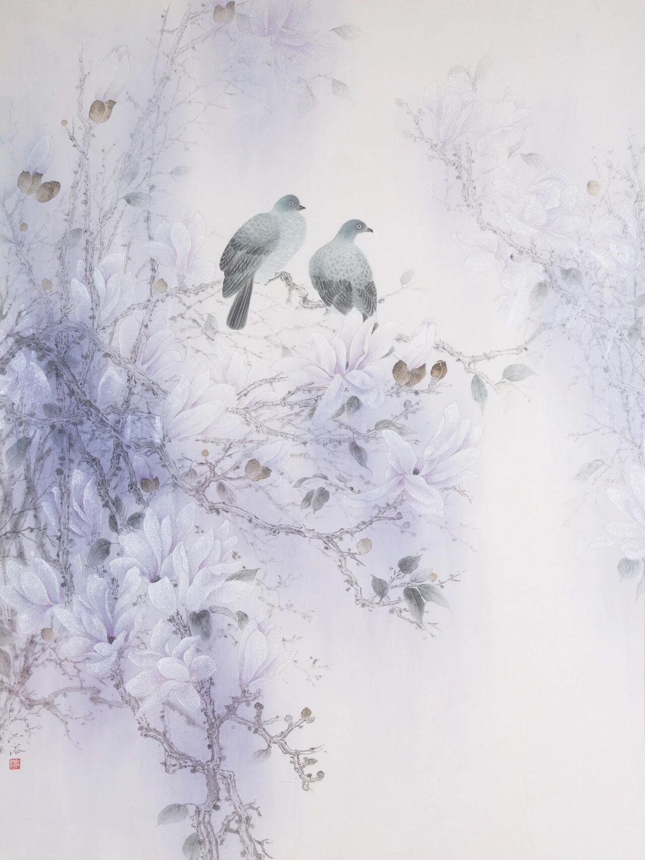 在当代工笔的视觉谱系中,来自蜀地的江溶,凭借其独树一帜的风格,呈现出一派既承古韵又见新意的独特气象。其艺术实践可视为对“工写”“观物”“见境”三重维度的深度探索,这三者交织成一场与传统对话、与自然相拥的视觉哲思。
