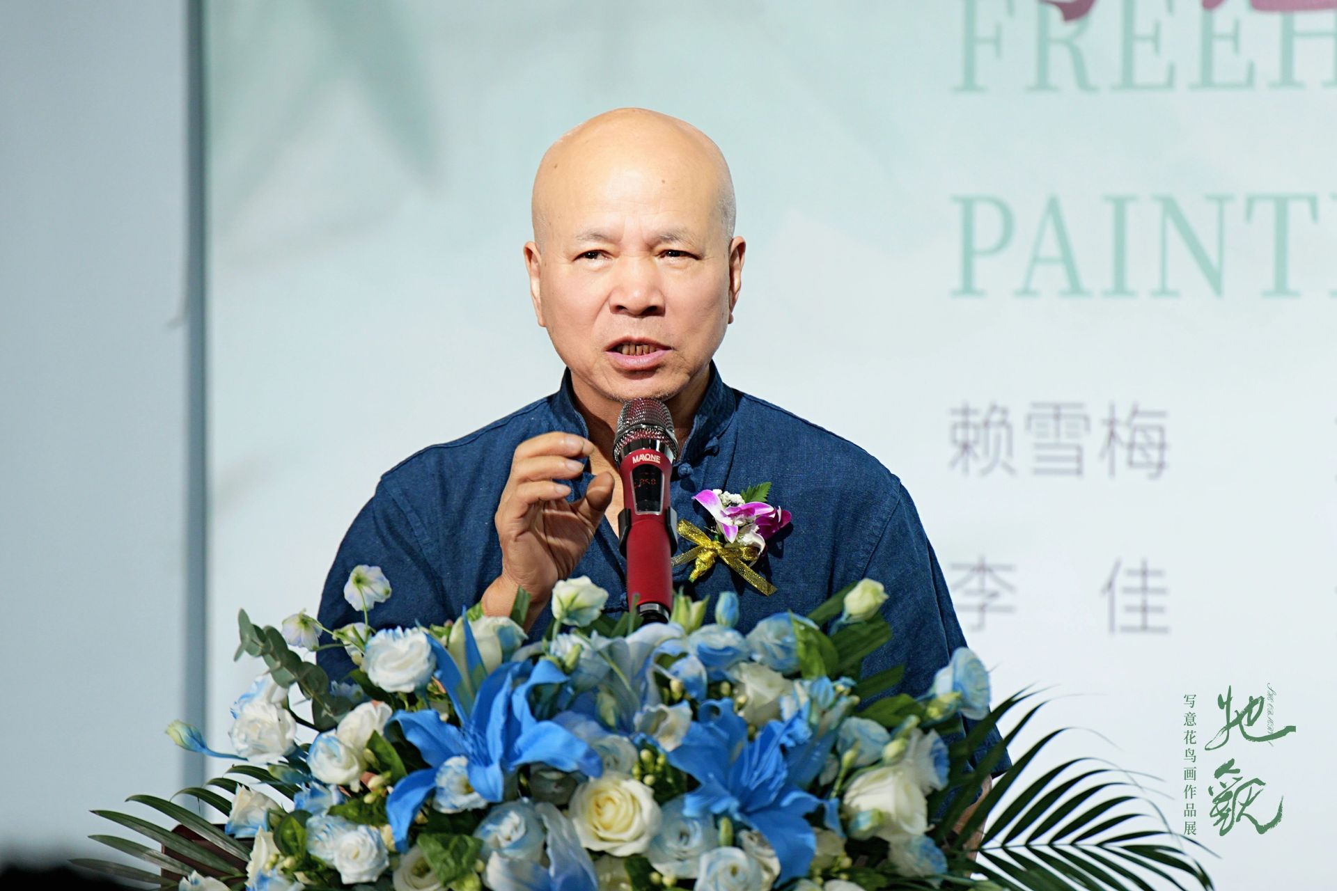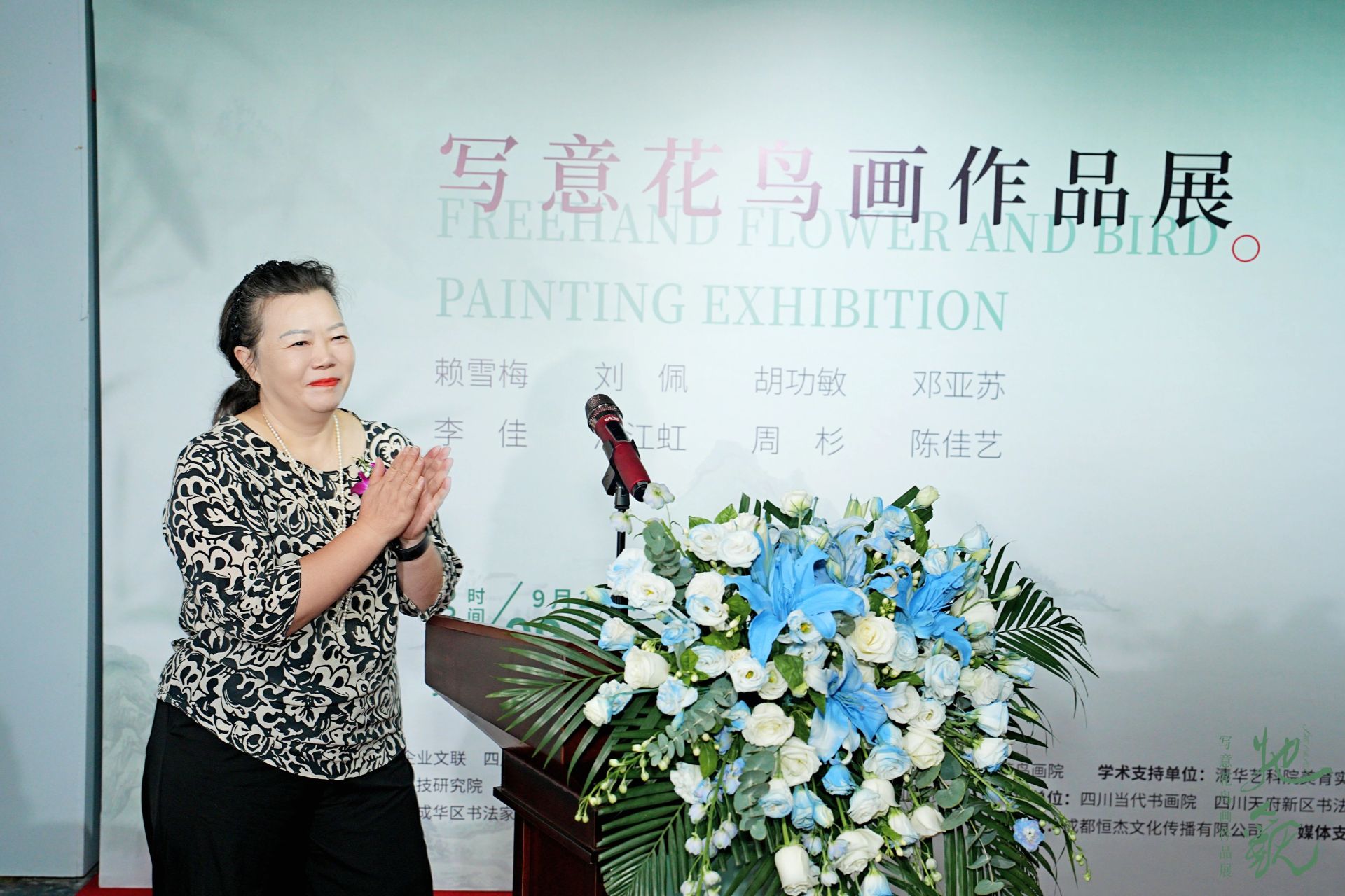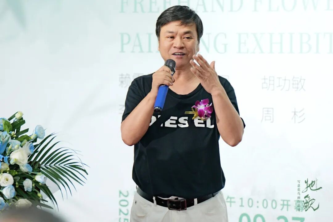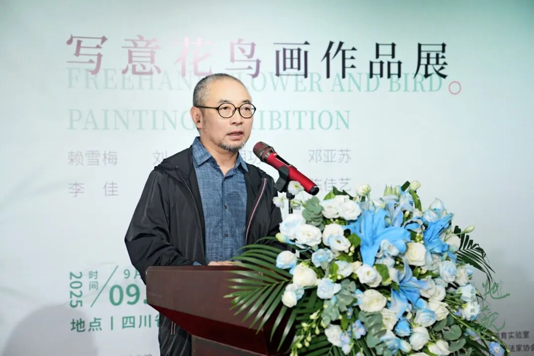 四川省美术家协会花鸟画专委会名誉会长、西蜀花鸟画院院长陈承基先生,作为本次展览八位画家的指导教师,也分享了他的创作经验以及对女性艺术家的期望。 他着重指出,女性艺术家应当坚守艺术初心,执着探寻艺术真谛,持续提升自身的技艺与素养。陈先生鼓励她们在写意花鸟画领域精耕细作,勇于创新,凭借独特的艺术视角与表现手法,为这一传统艺术形式注入新的活力,推动其繁荣发展,作出更大贡献。